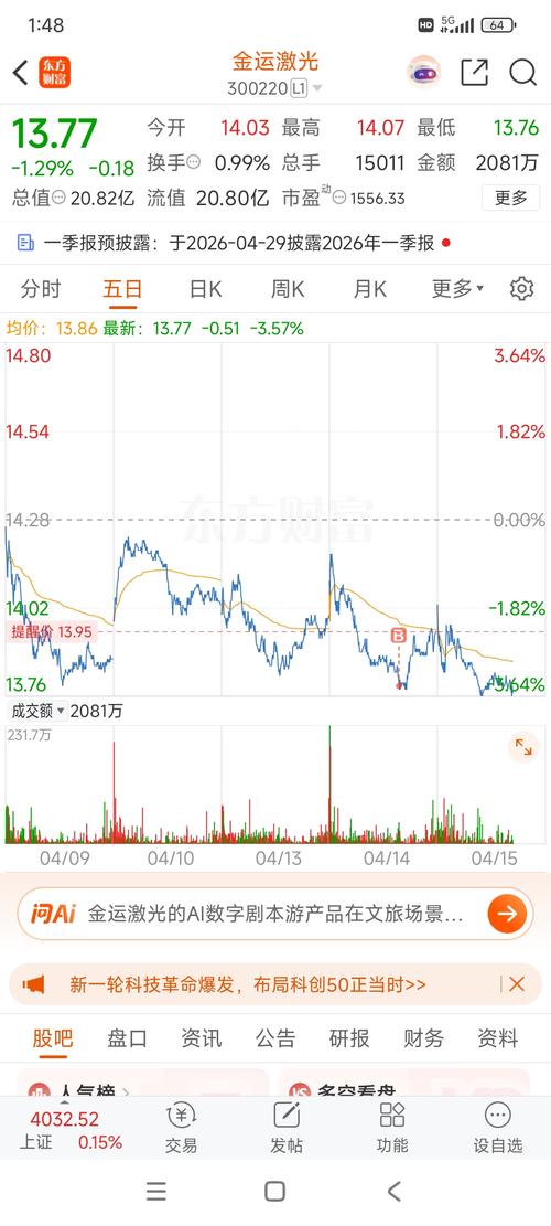 $金运激光(SZ300220)$公司业绩不是一般差,幸亏小市值加创业板可以当个垃圾股炒一下,等吧