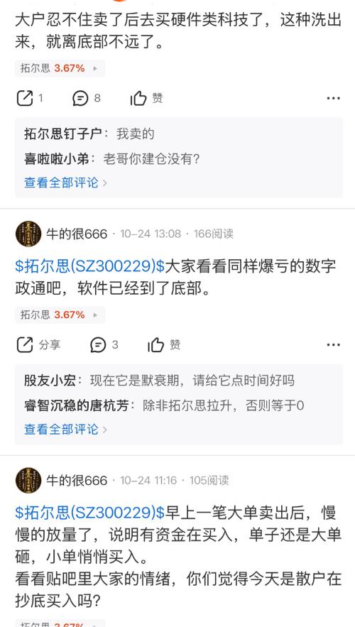$拓尔思(SZ300229)$连续几天发帖告诉大家,稳住稳住,不要乱割肉。今天拓尔思上涨,不一定代表就要拉升了,但是只代表一件事,没有永远涨的股,也没有永远跌的股。如果一个股长期下跌。只能说明它在地产、白酒这种夕阳产业。 而ai硬件这么火爆。为了什么?还不是为了未来ai大模型做好基础。如果大家认真分析ai软件板块,就知道最近大家都是巨亏,而且公司亏损加大。所以拓尔思只是缺风口,并不是公司不行。 如...