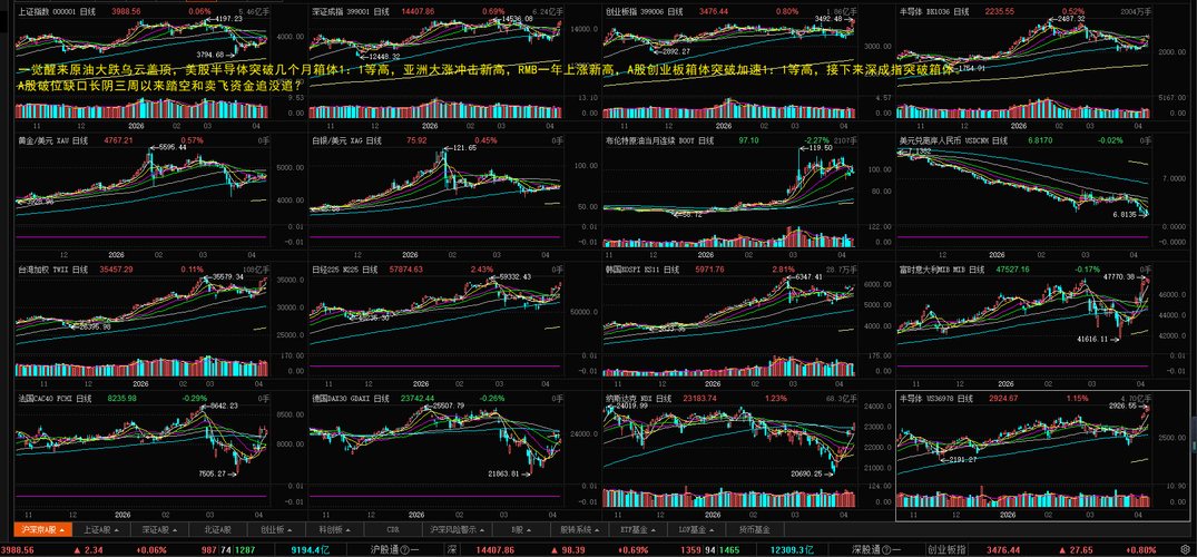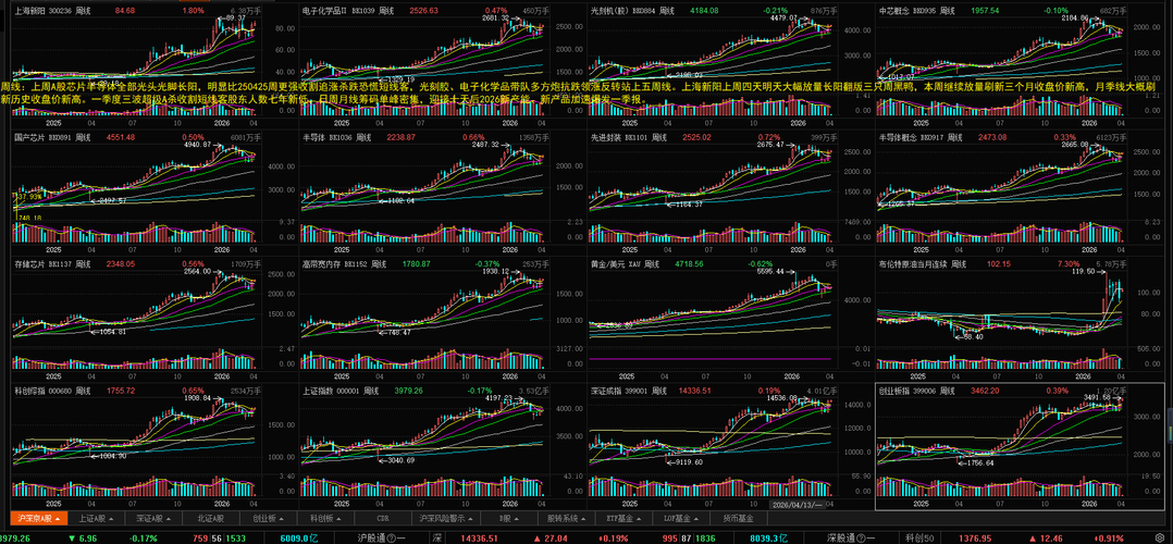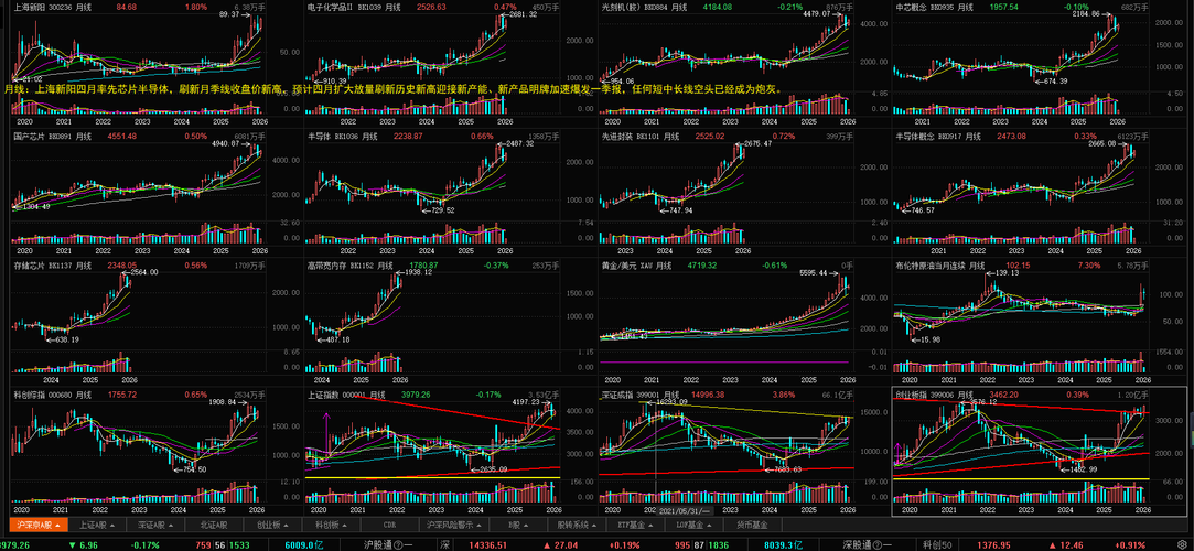111- 周线:A股芯片半导体明显强于去年0704破位恐慌底后走势,创业板、深成指率先突破一季度箱体加速向上1:1等长,芯片半导体本周加速向上,老鸭头再次抬头翻版去年七八月走势,RMB一年大涨十个点,A股已经提前进入去年七八月加速模式。 七年独立挖坑庄股三波超级巨震两周放量大涨刷新前高和历史新高在即,五年营收3倍扣非净利润7倍,2026新产能、新产品明牌加速爆发,一季度明牌强于芯片半导体,基本面决定中长线,20年历史高点必然没有任何阻力,芯片半导体已经四年箱体突破1:1等长。