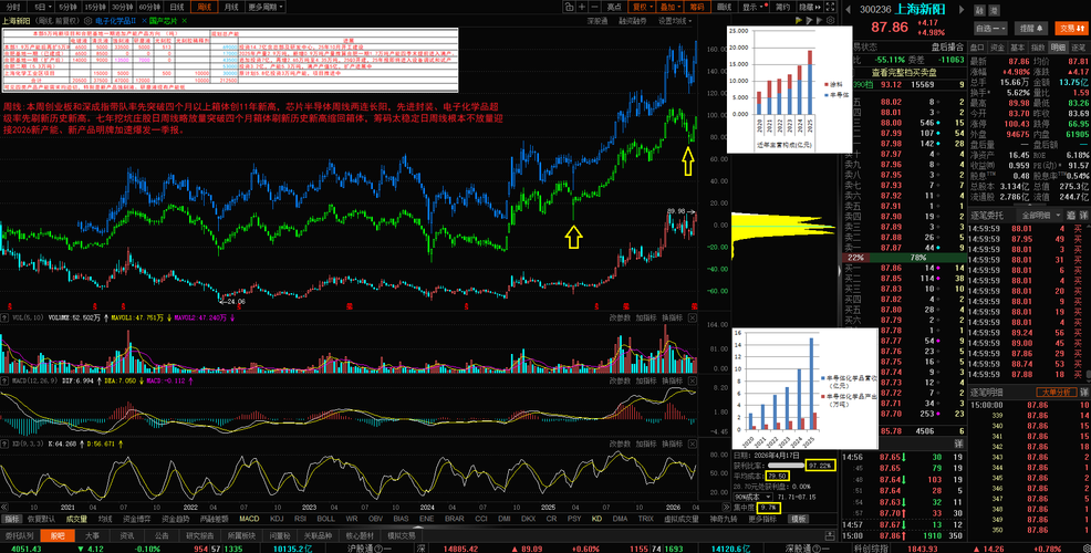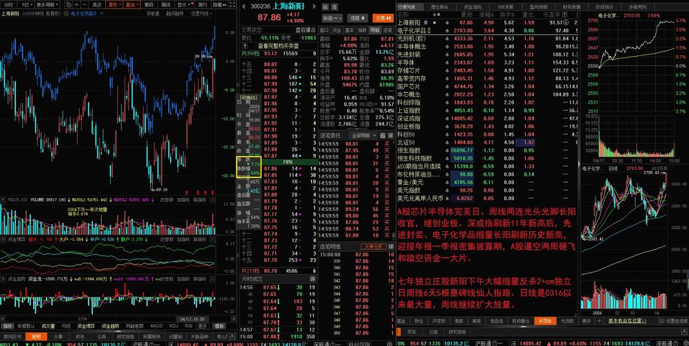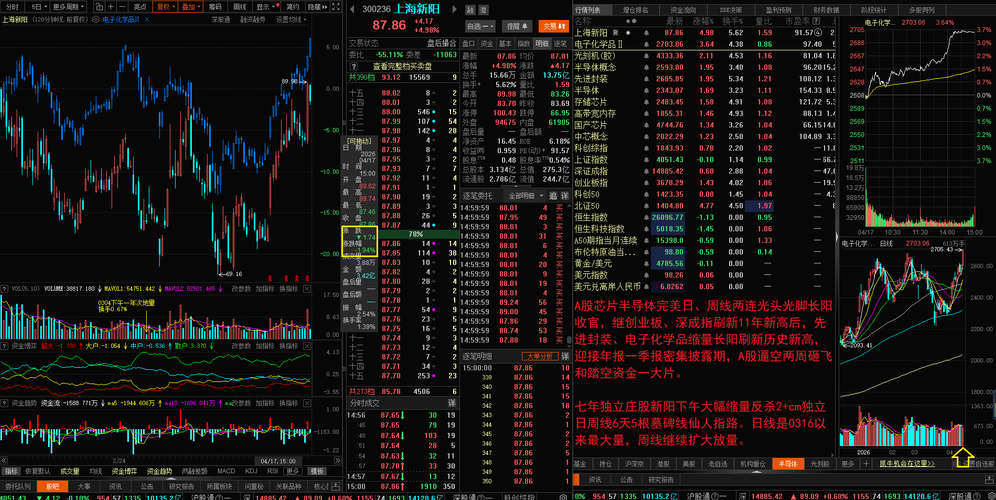 $电子化学品Ⅱ(BK1039)$$光刻机(胶)(BK0884)$$上海新阳(SZ300236)$ A股芯片半导体完美日、周线两连光头光脚长阳收官,继创业板、深成指刷新11年新高后,先进封装、电子化学品缩量长阳刷新历史新高,迎接年报一季报密集披露期,A股逼空两周砸飞和踏空资金一大片。 七年独立庄股新阳下午大幅缩量反杀2+cm独立日周线6天5根墓碑线仙人指路。日线是0316以来最大量,周线继续扩大放量...