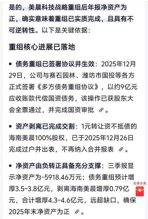 【问】董秘你好,请问新管理层上任后重组进展缓慢,股价跌跌不休,公司生产经营是否正常?重组是否有重大阻碍?【答】ST美晨:尊敬的投资者,您好!股票价格受宏观经济环境、证券市场环境、公司经营业绩等多种因素综合影响。截至目前公司各项经营正常、重大资产出售事项正按既定工作流程有力有序推进,同时公司也将及时按规定披露相关事项进展情况,感谢关注!