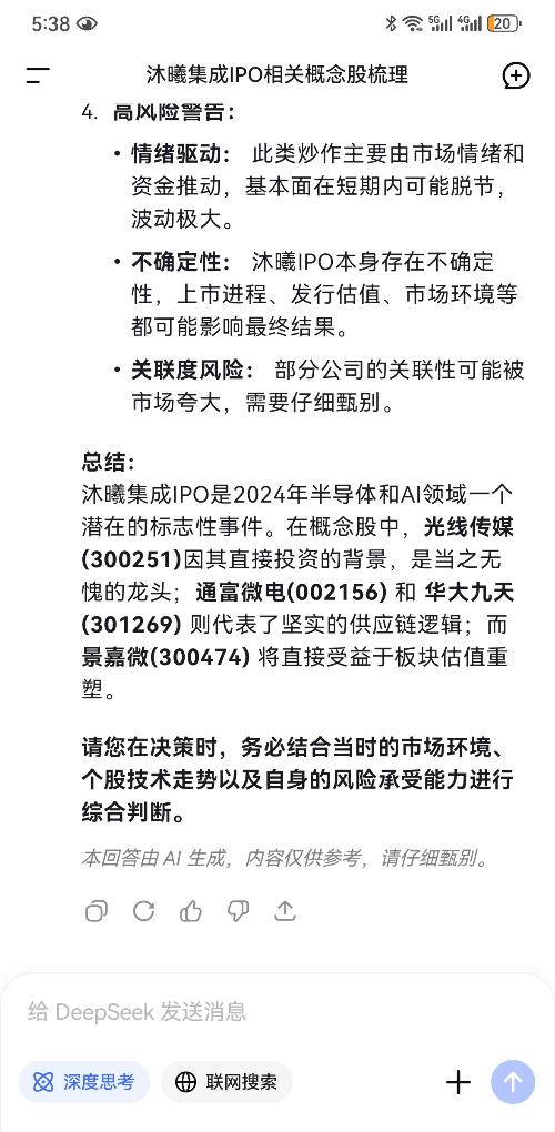 $光线传媒(SZ300251)$问deepseek,沐曦集成24号上市IPO利好哪个股票,首推光线传媒
