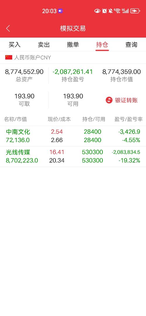 $光线传媒(SZ300251)$幸运的是模拟盘,不然真要跳海喂鱼了