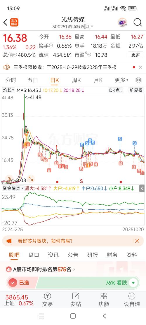 光线关注度越来越低,更没有主力资金入场,完全处于自由落体大型下降趋势中运行,根本原因是上方巨量套牢盘承压明显,下方底部还能还远未到(明年业绩将断崖下降预期强烈),其实哪吒是饺子导演厉害,跟光线没关系,接二连三的票房失利可见光线出品的水平真的一般般,而哪吒3是否还是光线深度合作还未可知,哪吒2后饺子导演不缺钱了,下一部光线占比肯定会下降而且是5年后,这些都是不乐观的要正视的因素,股价不说跌回去年的6...