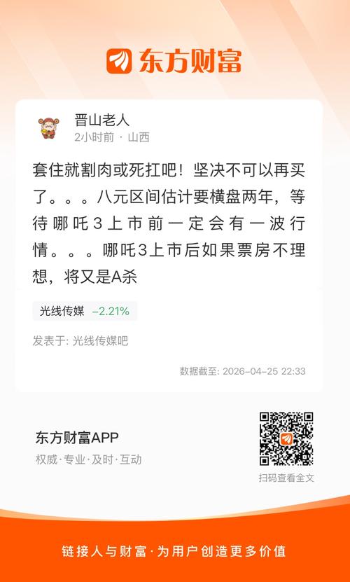 $光线传媒(SZ300251)$只剩1.9亿营收,3000万利润怎么维持450亿市值。是打算天天阴跌吗