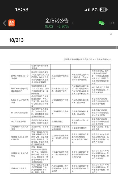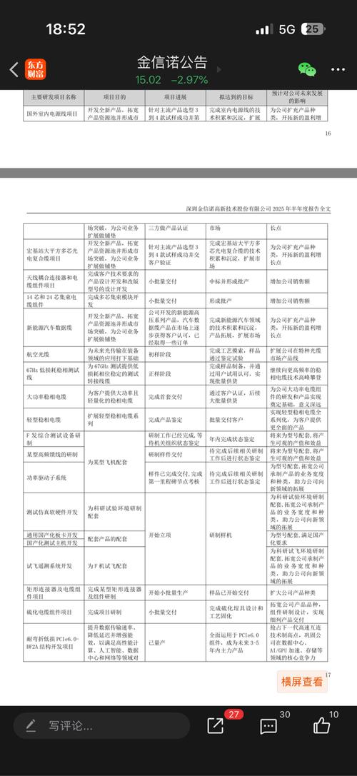 $金信诺(SZ300252)$看看2025年半年报的公告:火箭+卫星+光通信三赛道共振,整个上半年都在研发送样小批量生产,主要核心如下: -航天核心:星网、蓝箭核心供应商,火箭高速线缆市占率超40%,星载天线、传输线全覆盖。 -光纤核心:高速光缆一体化,800G/1.6T光模块在研,6G太赫兹已完成实验室验证。 业绩爆发期集中在2025年Q4跟2026年上半年!锁仓耐心持有,个人观点,不喜勿喷!
