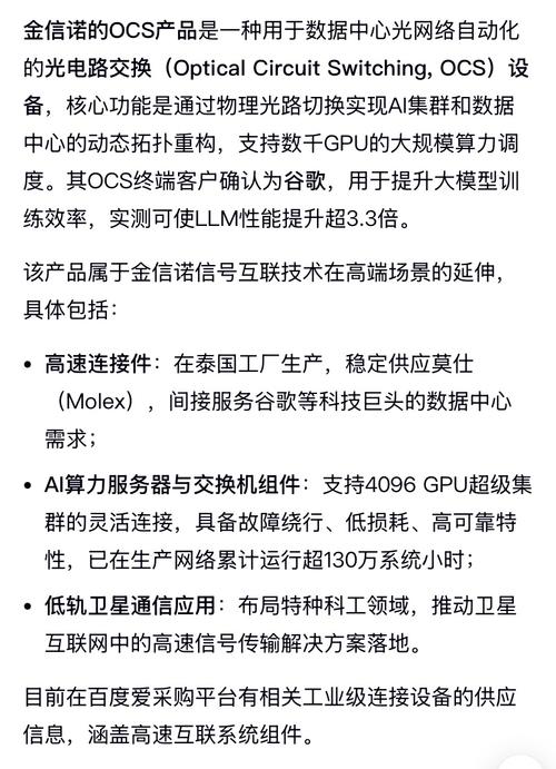 金信诺作为“东数西算”国家级工程的供应商,已拿下内蒙古数据中心集群的核心订单。该集群采用“高速铜缆+光缆”混合互联方案,金信诺是国内唯一能批量供应100米以上长距离800GDAC铜缆的厂商,合同金额超12亿元(占2024年总营收的56%)。