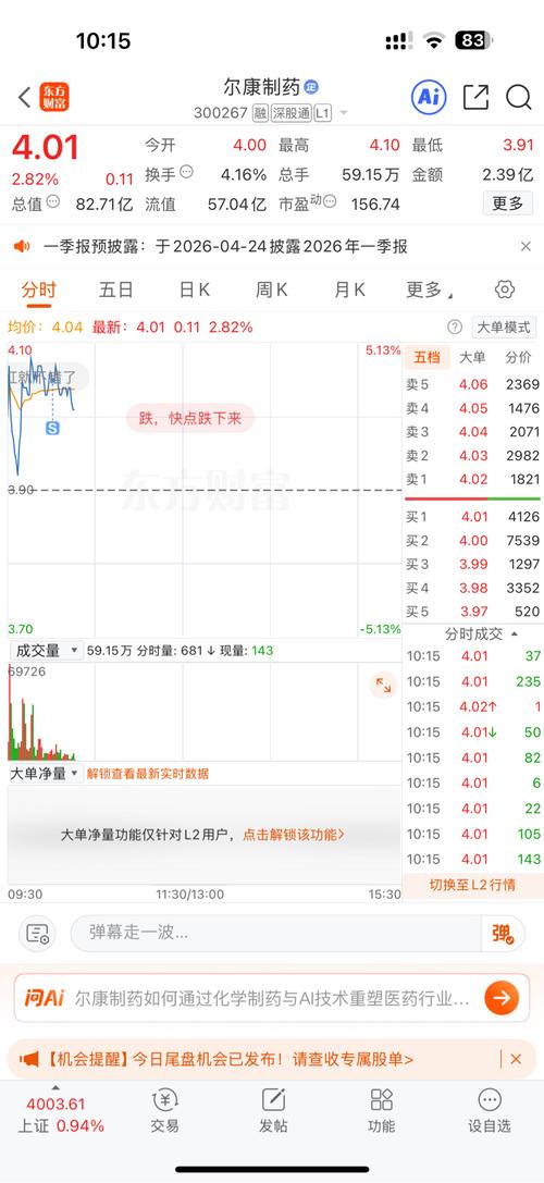 $尔康制药(SZ300267)$今天这个打法有点太明了,应该先下沉,横一上午,下午再搞,就是好牌啊,2干万真金白银打在4.02之上,