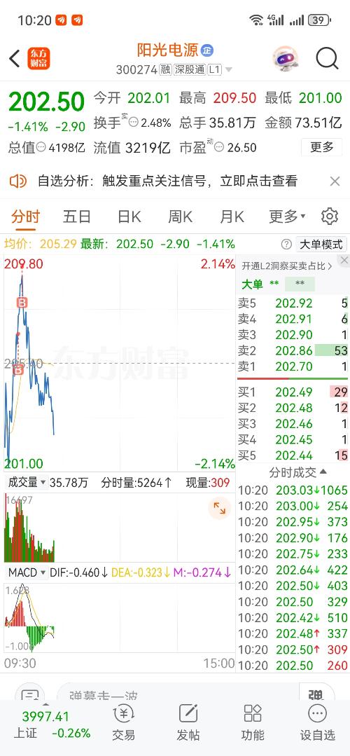 $阳光电源(SZ300274)$费咯,昨天对子顶,今天拉高突破不了前高,出货行情