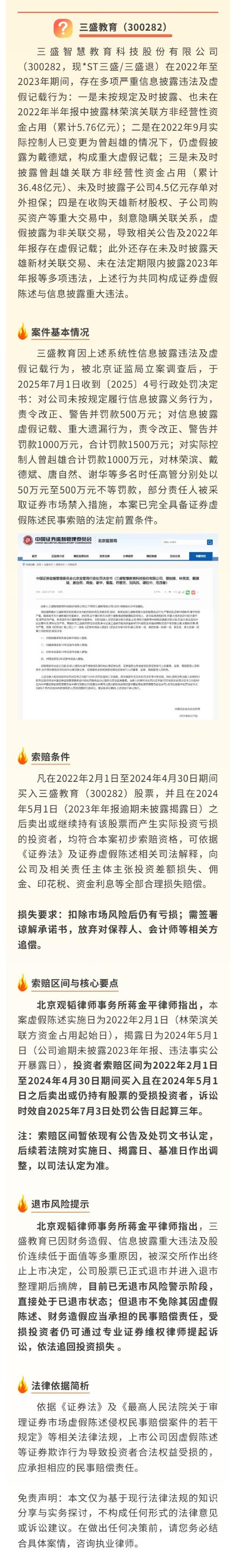 $三盛退(SZ300282)$$R三盛1(SZ400228)$三盛教育一审股民已胜诉。毋虚证券诉讼团队友情提示:如果您在2021年7月5日至2022年4月27日之间买入三盛教育,且截止2022年4月27日收盘时未清仓;受损投资者可通过公号“毋虚证券诉讼团队”登记索赔。
