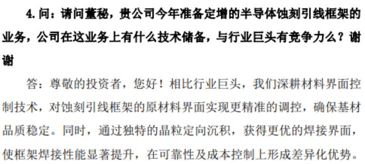 半导体蚀刻引线框架,是芯片的心脏骨架、算力底座与能量中枢! 它是高端芯片迈向微型化、高性能化的核心命脉,是突破卡脖子技术、引领半导体产业跨越式升级的战略级关键材料!凭借碾压传统工艺的微米级精度、超强可靠性、极致散热与导电性能,一举成为AI芯片、车载芯片、5G射频、高性能计算等尖端领域不可替代的核心载体,是全球高端封装的终极选择! 温州宏丰,以硬核技术领跑赛道! 公司深耕材料界面精准控制,从源头锁定...
