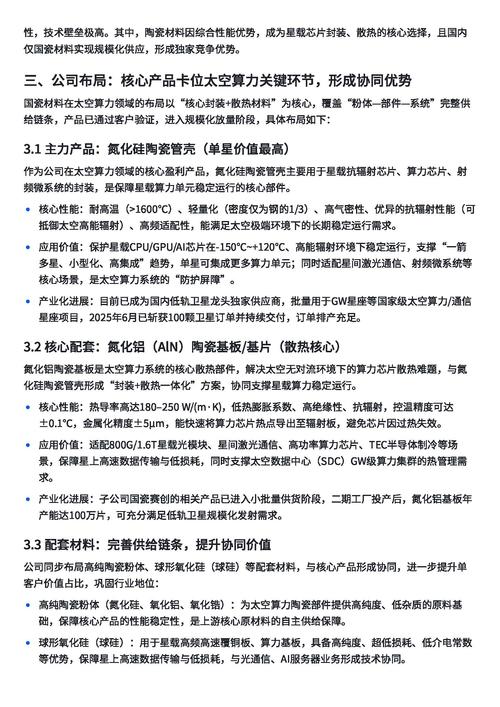 国瓷材料的氮化铝(AlN)TEC陶瓷基板适配800G/1.6T光模块需求,良率85%,是800G/1.6T光模块核心散热部件,年产能100万片/年(2025Q3二期投产)。毛利率40%–50%。国内客户有华为、中际旭创、新易盛;海外客户有西门子、诺基亚等。公司已为英伟达H200服务器供货散热件。