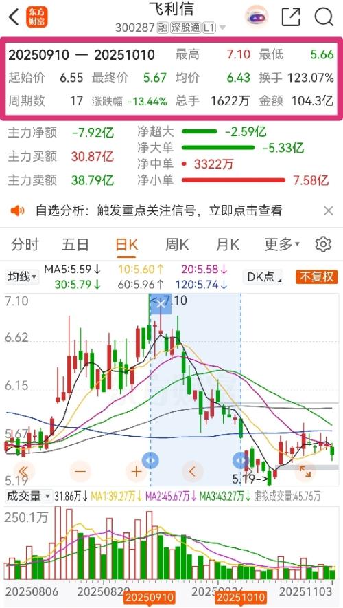 $飞利信(SZ300287)$今天545抄底,明天直接出,跟主力玩快进快出