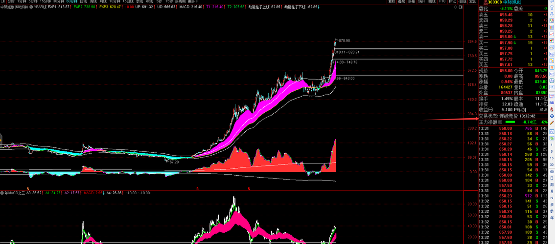 周二早评,中际旭创 冲高回落显分歧,慢牛震荡磨砺时。 水下承接韧性在,股价新高莫心疑。 多头排列趋势健,红柱拉长动能齐。 不遇放量阴线出,跟随节奏步不迟。
