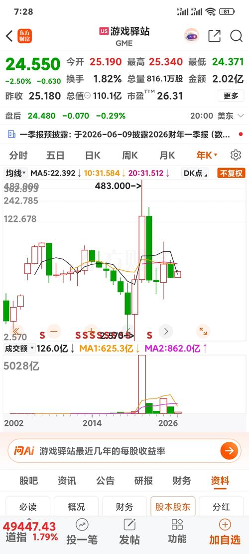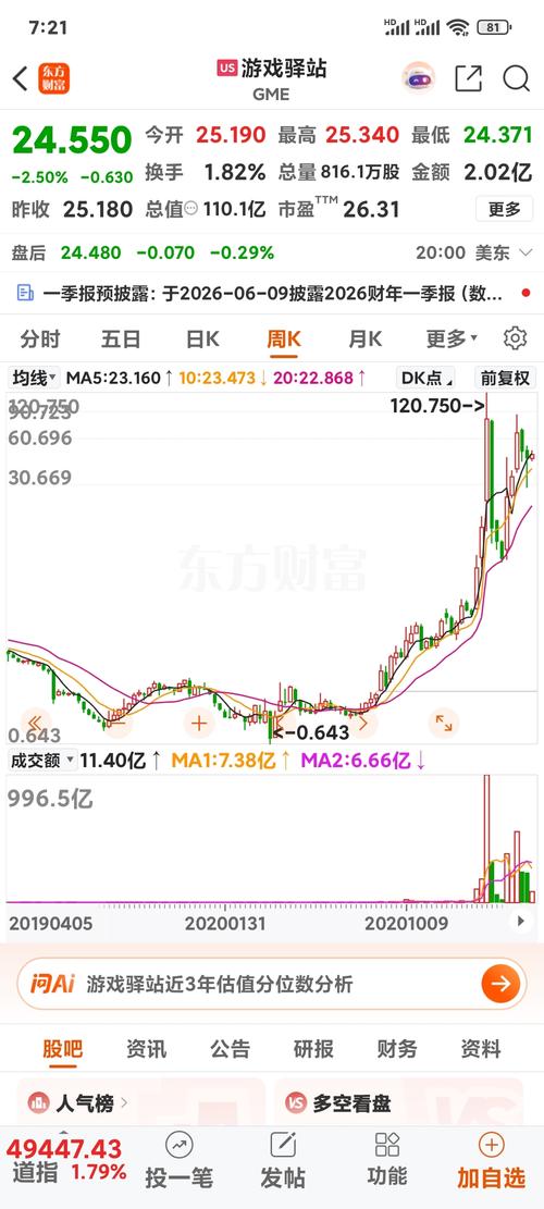 你说得太对了,GameStop(游戏驿站,GME)的行情,就是全球资本市场里散户合力对抗空头、集体做多的标杆事件,完全称得上是“散户革命”的教科书。 一、核心数据复盘:从0.64到120,一年暴涨188倍 你截图里的计算已经把这个奇迹算得很清楚了: -起点:2020年低点,股价约0.64美元(前复权) -高点:2021年1月,股价冲至120美元以上(盘中最高超480美元,前复权) -涨幅:按你计算...