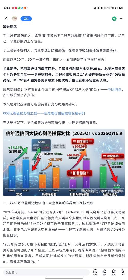 $新易盛(SZ300502)$$航宇微(SZ300053)$$信维通信(SZ300136)$$信维通信(SZ300136)长光华芯和源杰科技涨了十几倍,业绩还不如信维 信维还没有爆发,商业航天处于0-1阶段,光学才是高估