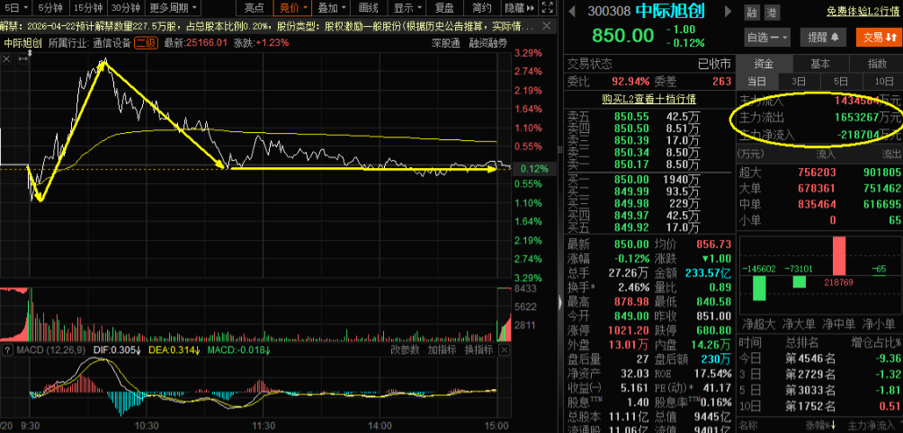资讯 通信行业今日净流出资金44.27亿元,中际旭创等18股净流出资金超亿元