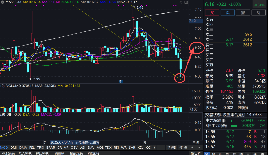 9714- 主力现在两个选择,1是砸盘放弃这个股,浪费这段时间的运作,去外边抢食吃;2是继续拿手里的筹码砸盘,试图触发量化卖出信号,然量化割肉卖出,它好接盘,但是这样的做的风险是,浪费了这段时间的这股技术面的孵化,浪费了时间成本,更重要的是浪费时间成本。更重要的是,如果它砸盘,量化不卖出呢,或者是被外来的切换资金抄过去,那么它的乐子就会更大了;3是把今天量化直拉看做是点火信号,提前启动行情。这样的话,它想吃够筹码就得边拉边吃了,甚至是急拉一次,触发量化卖出信号,把筹码高价钱接回来。总而言之,这次量化的搅局,会抬高主力的持仓成本,这也是它迟迟在地位不启动,不着急脱离成本区间的惩罚,随着高低切的到来,会有更多的切换资金闻着味来,所以主力还不作为的话,那就等着踏空这轮牛市吧。