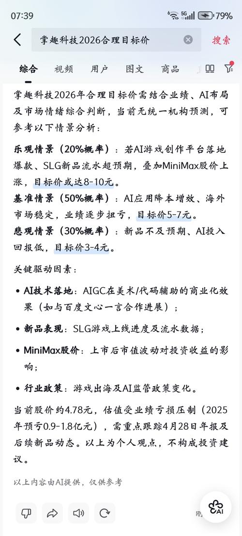 关于掌趣一季报预测: 由于之前持股玄机1.36%出售可能是计入半年报,因此将这先排除在外。那么一季报最可能影响收益的是网禅分红的分摊及MinⅰMaX的上市公允价值变动:看(2026Q1) -MiniMax公允价值:2326-8000万左右 -网禅联营收益:200–400万 -合计投资相关利润:约2526万~8400万 利息收入:2100万 所以掌趣一季报不确定性很大,因为主业收入可能没有去年一季度...
