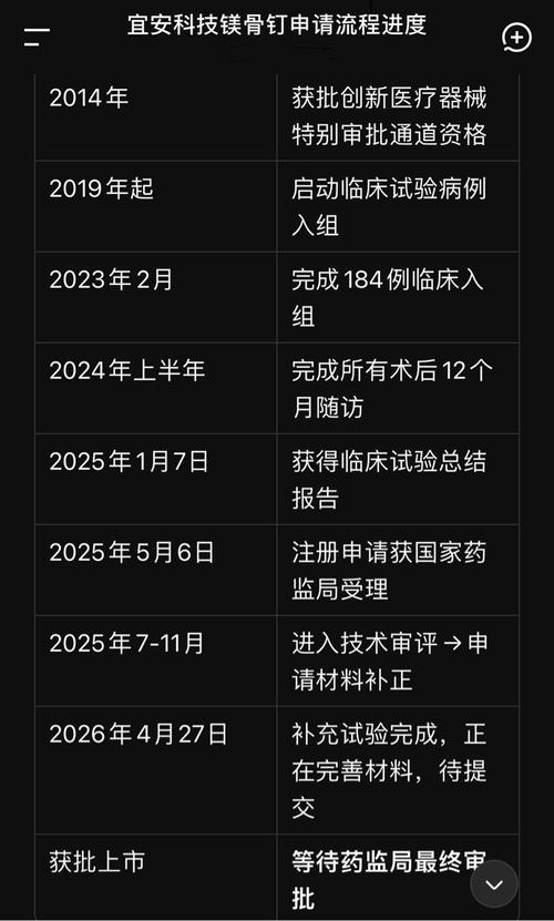 $宜安科技(SZ300328)$镁骨钉是一个非常非常好的医疗用品,替代钢板,避免二次取出,造福人民!十年磨一剑,现在实验已经通过了,只要材料过了,那市值最少值的翻倍!