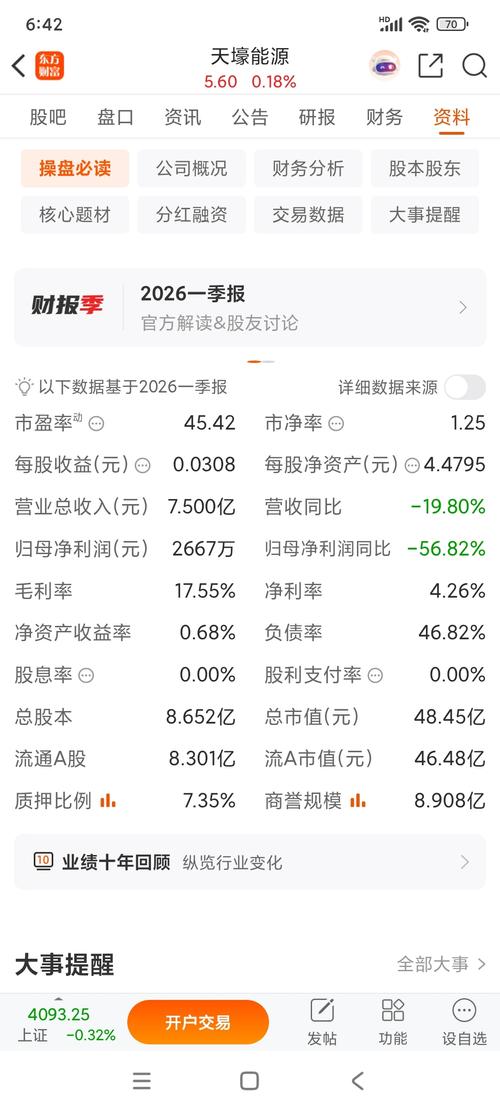 天壕能源(300332.SZ)发布2026年第一季度报告,该公司营业收入为7.5亿元,同比减少19.80%。归属于上市公司股东的净利润为2667.09万元,同比减少56.82%。归属于上市公司股东的扣除非经常性损益的净利润为2734.45万元,同比减少53.67%。基本每股收益为0.0308元。天壕能源(300332.SZ)发布2026年第一季度报告,该公司营业收入为7.5亿元,同比减少19.80...