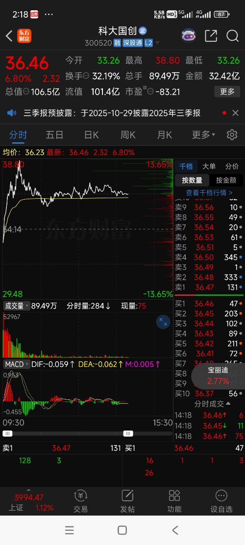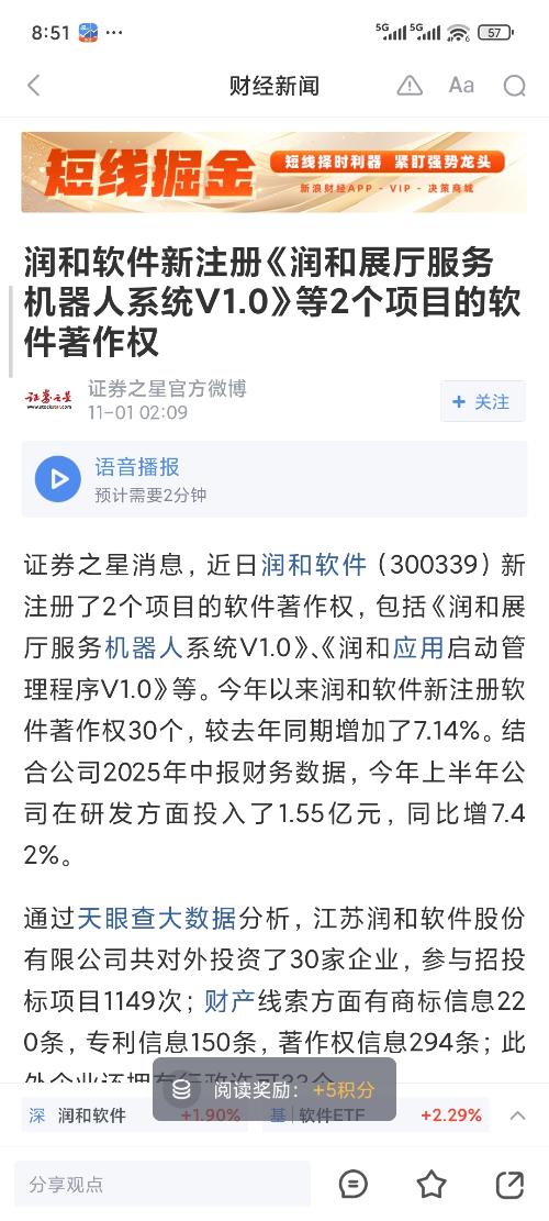 $润和软件(SZ300339)$实盘实战,今天早盘科大国创涨10几个多点的时候37.55元清仓,同时上午59.6元买了一些润和软件。看好鸿蒙6系统的推广。