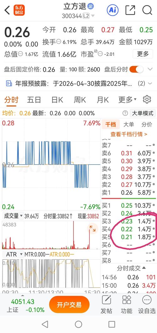 $立方退(SZ300344)$即使不想持股到三板,在0.25托单超过16万手的情况下,0.26价位卖出,还能在0.25或0.24价位接回吗?!整理期最后的3个交易日,买入立方退(300344)的博弈者会比卖出或清仓的投机者多,今天0.25买不到,或许下周一0.26也买不到了!在整理期坚守了那么久,即使要卖或清仓,也建议下周二整理期的最后一天离场,个人觉得立方退(300344)的停牌价会在0.28或...