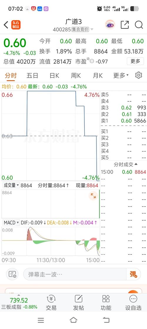 立方退市股说句实话走势健康漂亮!我一开始即预判会跌破0.3下方,我0.3下方已开始慢慢建仓并持续买入中~,希望它先不要上涨,慢慢阴跌直到退市,我喜欢这样走势!不去玩三板的赶紧卖哈