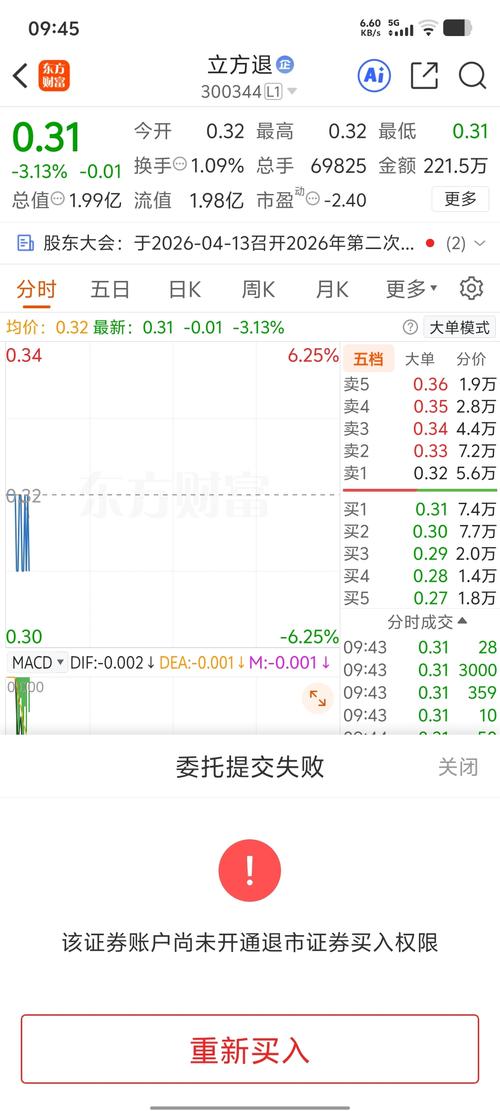 $立方退(SZ300344)$退市整理期最低0.28差不多了!