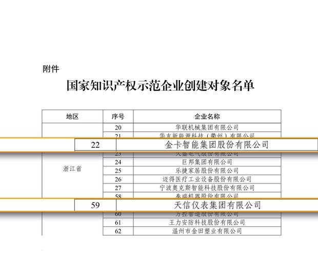 国家级荣誉!金卡智能及天信仪表入选《国家知识产权示范企业创建对象名单》 近日,国家知识产权局公布2025-2027年《国家知识产权强国建设示范创建对象名单》,金卡智能集团股份有限公司、天信仪表集团有限公司凭借卓越的知识产权管理能力和技术创新成效,成功入选国家知识产权示范企业创建。该荣誉是国家给予企业知识产权管理工作的最高评价与肯定。 金卡天信闪耀CIPPE2026!硬核产品矩阵实力出圈,赋能能源低...