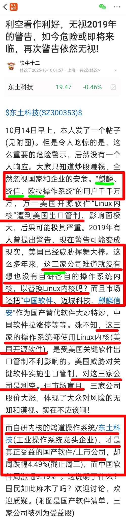 $东土科技(SZ300353)$ 自研操作系统内核这条路,很难走,非一日之功,研发费用高昂,但必须走(这条路)。这么多主流国产操作系统(麒麟统信欧拉等),都走捷径,不愿自研内核,搞“重复建设”。中国有一个自研内核的国家级国产操作系统(对标Windows),就够了!