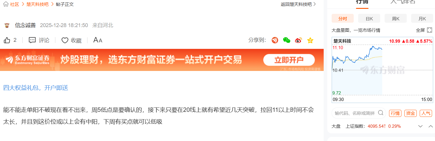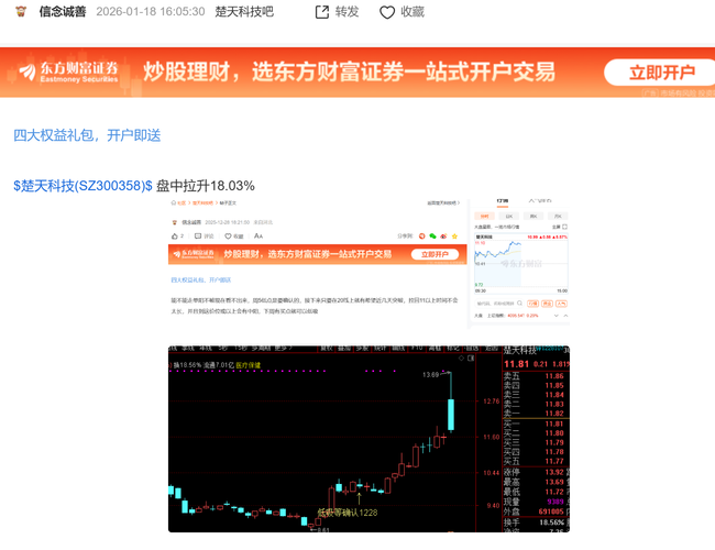 $楚天科技(SZ300358)$2025.12.28号发帖了一波,26.1.18号周末发帖汇总,有兴趣可以复盘看看它这么走的逻辑是啥。今天又翻到它,对它的骨性有所熟悉,这是要突破的走势,长压11.1,带量突破会是大阳走势,理想拉板概率也不小,有个重压11.9这里注意点就行。回调分批低吸,个人记录,不推荐