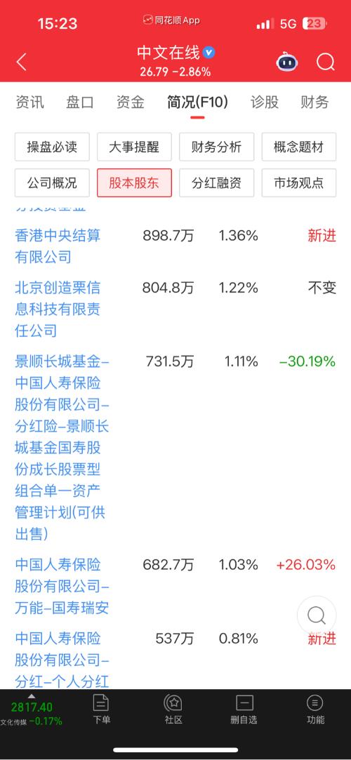 $中文在线(SZ300364)$为什么大家都没看到机构持股的增加呢