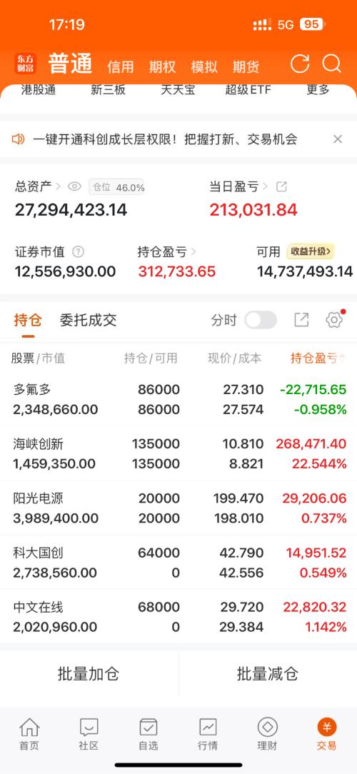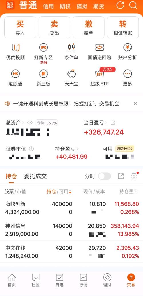 大家下午好!今日清仓了!在这个板块轮动加剧的情况下短线操作的时代已经逐渐走向下坡路了。各大柚子都转向趋势标的。还好在认知以内,今日介入三大趋势牛标$海峡创新(SZ300300)$早些的是就不说了。今日介入有今日的看法。趋势还在5日线,午盘后一直处于均线上下方切换说明资金护盘力度还是很明显的。我想拿稳。$神州信息(SZ000555)$强者自然恒强,早盘一度上升似火箭,出逃部分不坚定筹码后早尾盘迅速封...
