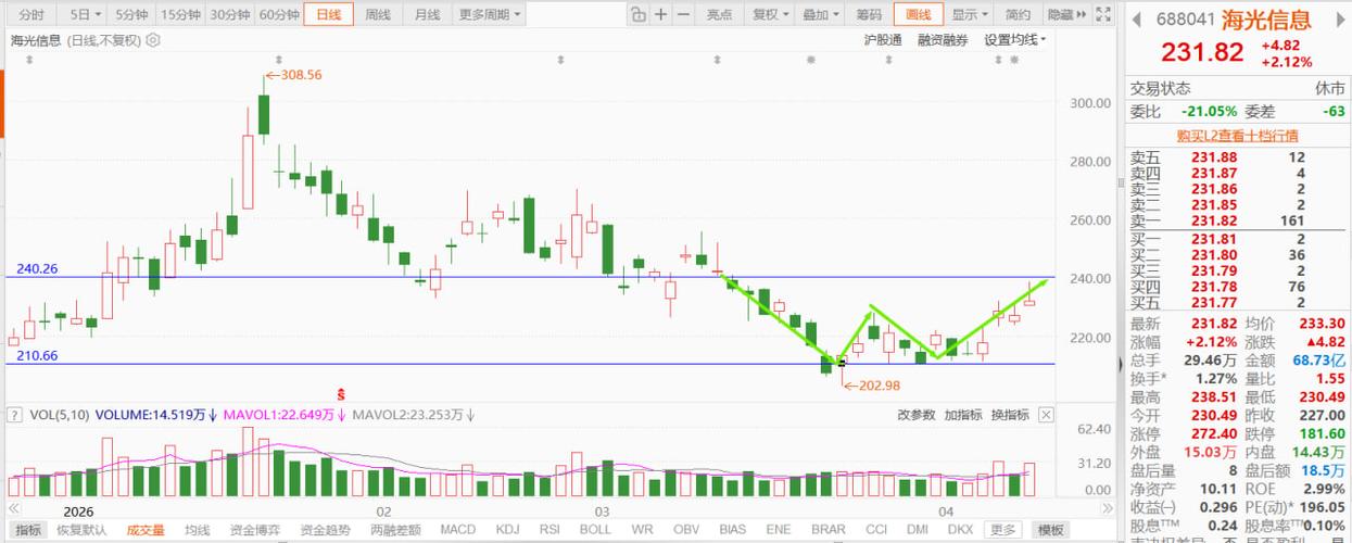 $德明利(SZ001309)$$扬杰科技(SZ300373)$$海光信息(SH688041)$ 一、今日成功验证我早评时的分析,今日大盘整体受地缘缓和消息影响低开震荡,早盘避险情绪明显回落,资金逐步回流科技方向,全天沪深两市总成交额2.16万亿元。上证指数开盘3971.20点,日内围绕3966.20-3991.26点区间震荡,下午向上企稳,收出标准纺锤线,收盘报3988.56点,微涨0.06%,高...