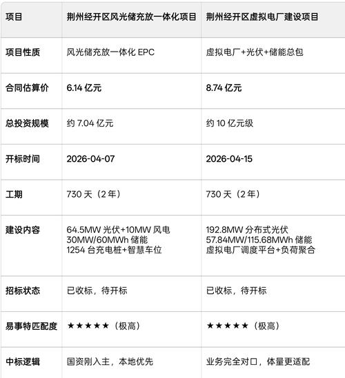 $易事特(SZ300376)$荆州目前有几个项目跟易事特的契合度非常高,国资控股在这个节点前落地,也可能就是奔着这俩项目吧,预测至少有一个会给到易事特。 一,风光储充项目 -金额:6.14亿 -开标时间:2026-04-07 二,虚拟电厂项目 -金额:8.74亿 -开标时间:2026-04-15