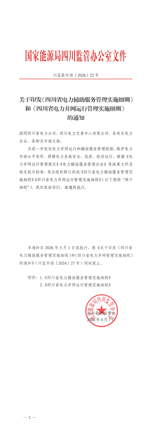一是优化与现货运行强关联的核心考核指标; 二是推动考核成本与市场价格接轨; 三是适应性调整新能源配储补偿机制,降低新能源配建储能调峰补偿标准并限制充放次数。 为全面适应四川电力现货市场连续运行新形势,进一步优化电力并网运行和辅助服务管理,保障电力系统安全稳定运行和电力市场有序运营,四川能源监管办近期组织对《四川省电力辅助服务管理实施细则》和《四川省电力并网运行管理实施细则》(以下合并简称“两个细则...