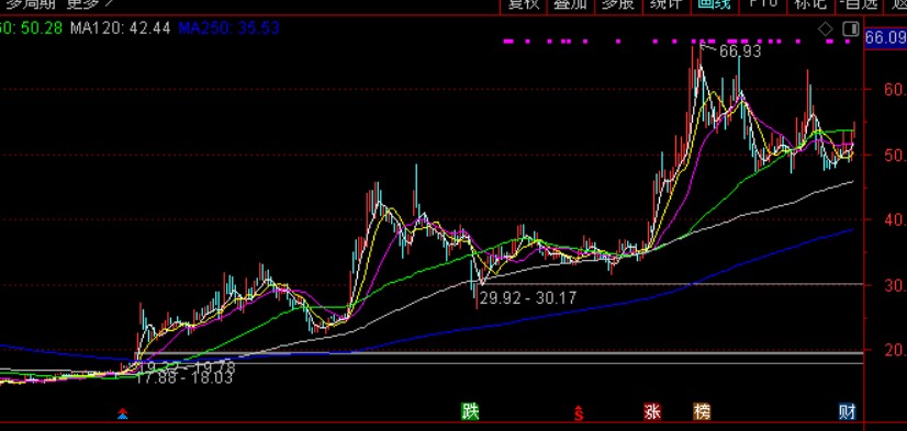 这股是按半年线走趋势,短线还是可能回踩半年线,价格50以内!