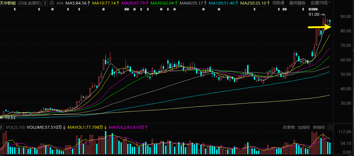 $天华新能(SZ300390)$:锂电板块看指数今天也该继续上新高了,如果指数新高,天华却不跟着发力,那就得多留个心眼,说不定这儿又到阶段高点了,它现在位置,只适合有底苍的做做滚动,新开的话,还是先观望稳妥,毕竟,日线技术层面位置不算低,一旦真要调整,估计要落到十均下方才能稳住,不过我个人认为,它主升结构还没完成,至于是直接在这个阶段走下去,还是月底前先调整一波,下个月再启动,两种走法都有可能,这...