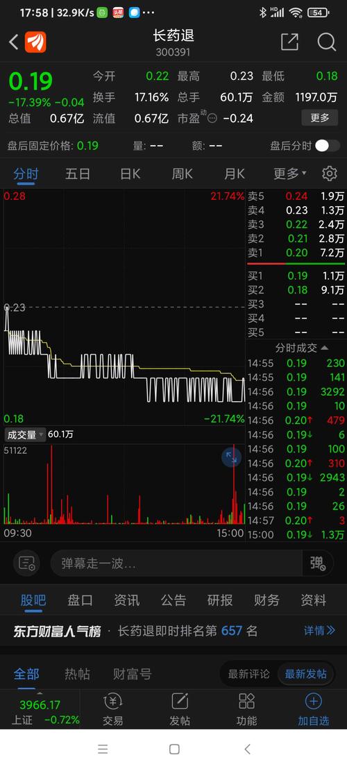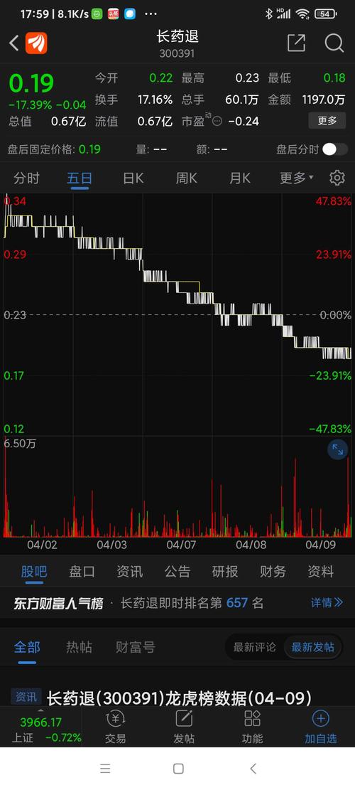 $长药退(SZ300391)$买买买!这么便宜,到三板至少翻几倍!