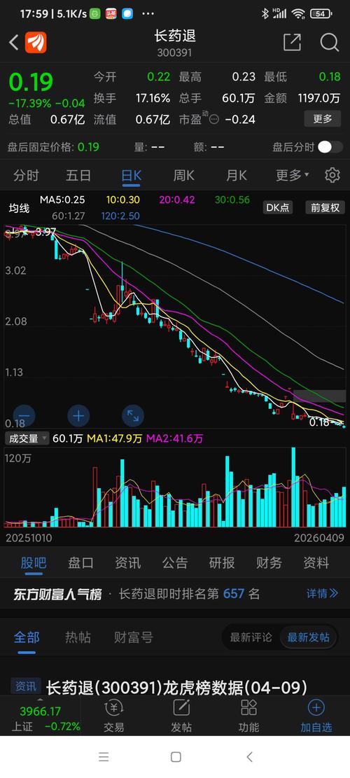 $长药退(SZ300391)$最低价是多少各位大哥们