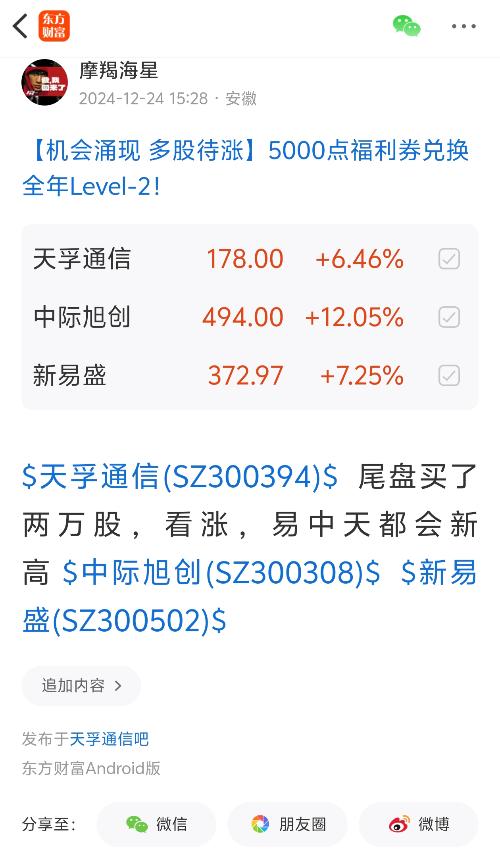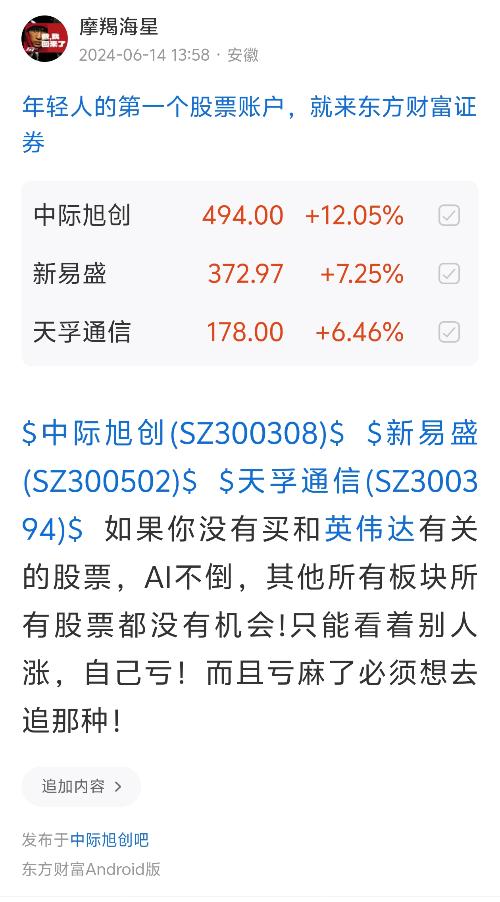 $中际旭创(SZ300308)$我去年就说易中天可以带来巨大的财富,英伟达的忠实拥簇者,到底那时候有多少人相信?$新易盛(SZ300502)$$天孚通信(SZ300394)$