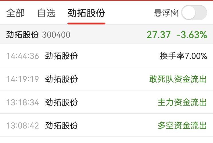 $劲拓股份(SZ300400)$下午主力和游资敢死队资金都流出,虽然14点44分有资金承接,但还是抵挡不住,今天没破5日均线,但也接近,所以中途减仓了,看明天破5日均线后的支撑再看情况要不要加仓做T。