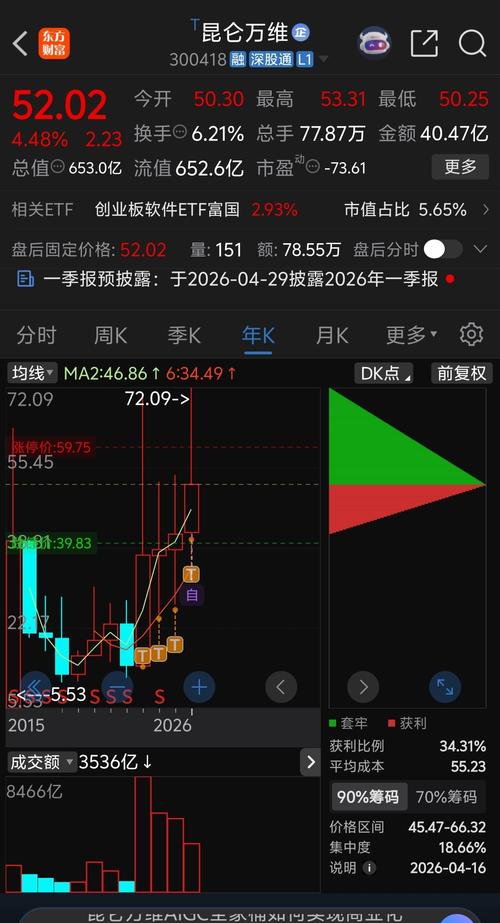 $昆仑万维(SZ300418)$ 昆仑万维(300418)深度解析:AI全链之王+出海霸主,业绩爆发在即 一、核心概况(2026.4.16最新) -股票名称:昆仑万维 -股票代码:300418(创业板) -股价:52.44元(+5.32%) -总市值:658亿元 -定位:A股稀缺“算力—大模型—AI应用”全栈龙头,海外业务占比93%+ 二、核心业务矩阵(全球生态) 1.天工大模型(技术底座) -天...