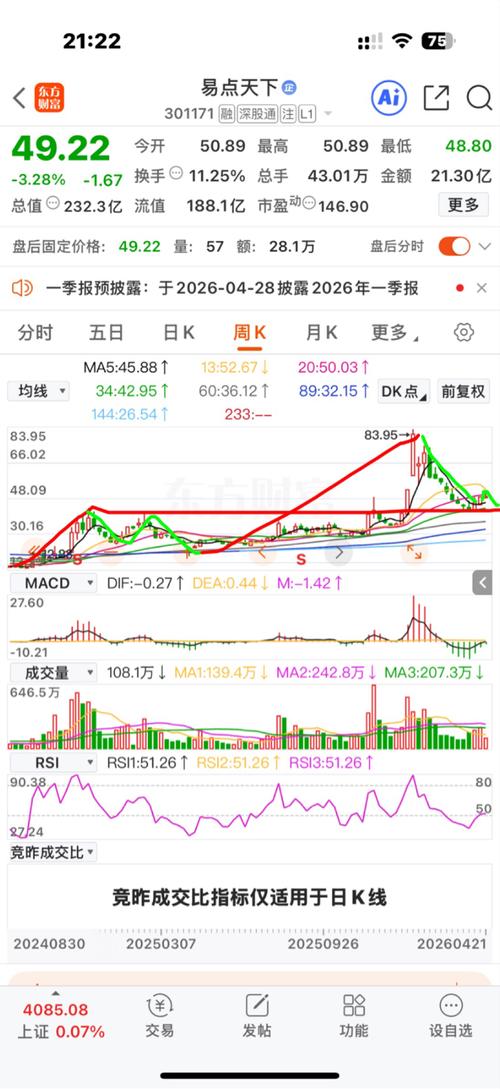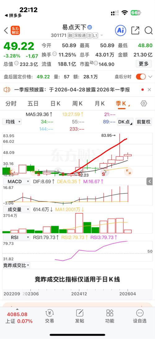 $昆仑万维(SZ300418)$季线一定创除权后的新高,90块不是梦,除权之后之前的83.95高点就不是83.95了,所以一定要注意抢筹,很早之前的帖子就有说到过,自己去翻阅,都没有删除,都是马前炮告诉你们宝子们的,绝不会墙头草一会看多一会看空,趋势都是盘中随时变化,也是第一时间立马提醒宝子们对应的方式。