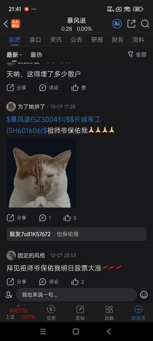 $暴风退(SZ300431)$拜见主师爷,保我一路红,