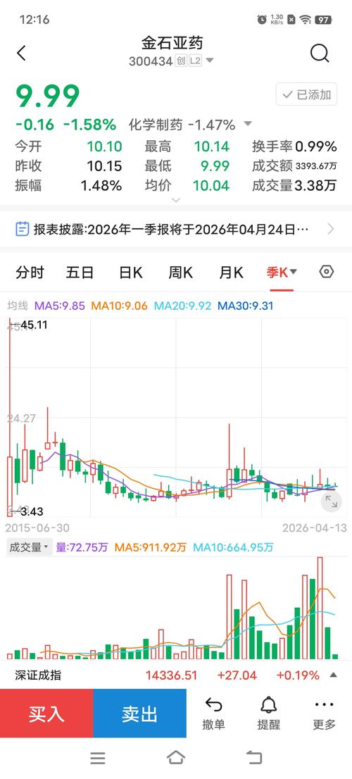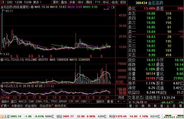 本周四个交易日,创业板涨约300点,涨幅10%左右,金石亚药涨9分,涨幅不足1%。