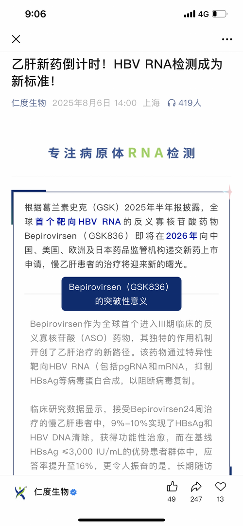 葛兰素史克GSK836和仁度生物HBV-RNA