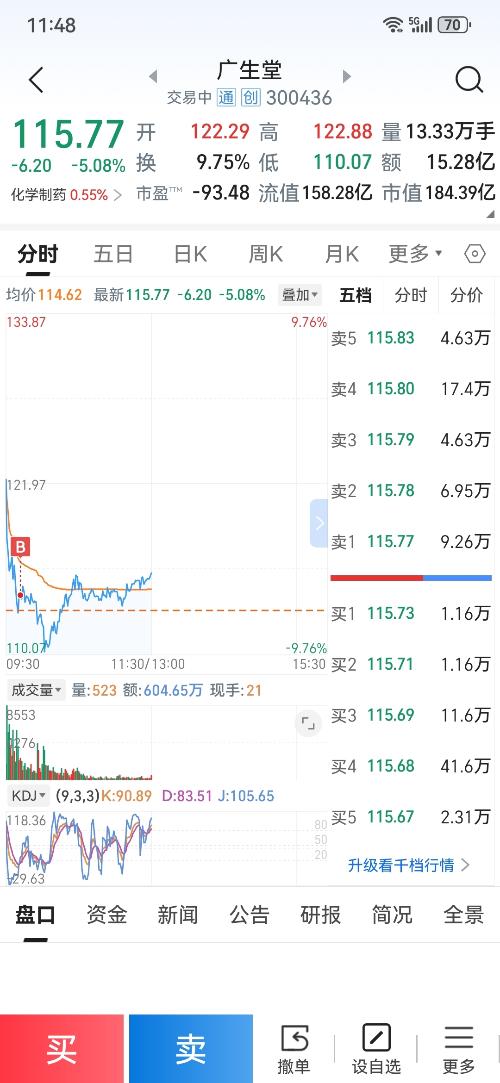 $广生堂(SZ300436)$今天盘面还算是很好的,开盘也是温和的,想过创新药会低开储力,结果板块还是比较猛直接高开,广生堂是原来龙头之一,今天太不抗打了,高开低走这么多,今天群其他龙头药都还是后面跟的,广到好最低到-10左右,估计割肉了一大波,由于上周五利润还是有8个点倒是没有慌,今天倒操作没有问题还加仓了,可惜是在-6.5左右就一次加满,到-10左右我也是不敢了,主力你赢了,又收集到一波便宜筹...