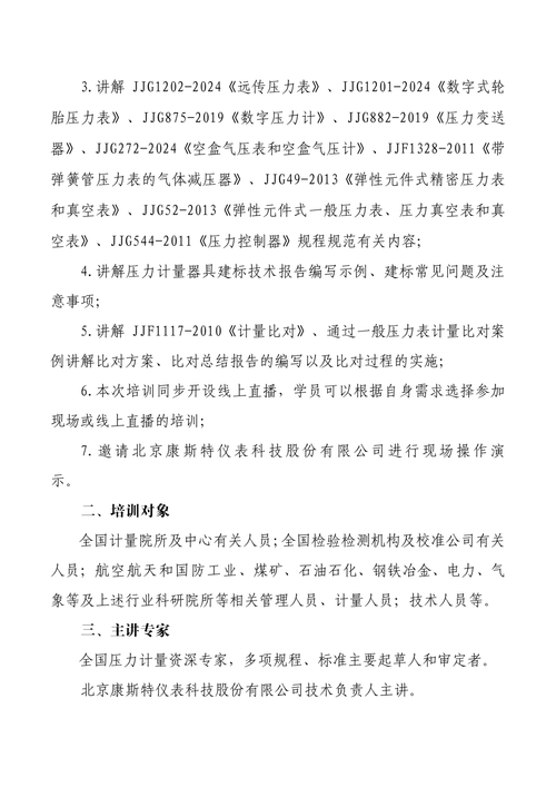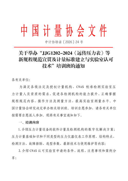 关于举办“JJG1202-2024《远传压力表》等新规程规范宣贯及计量标准建立与实验室认可技术”培训班的通知